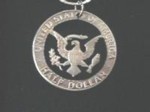 Hand Cut US Sterling Silver coins. These predate 1965. All are hand crafted, and include a necklace or a keychain. Currently, I don't have many pictured. However, I can cut any coin.